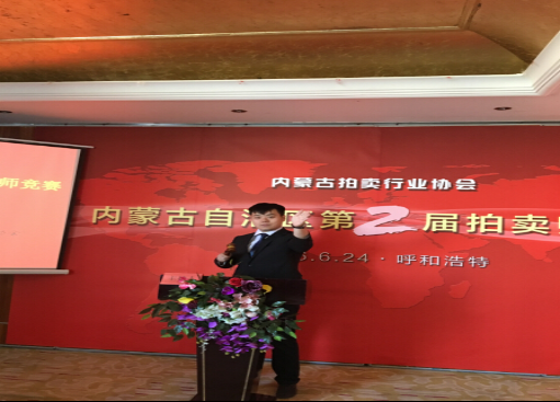 內(nèi)蒙古凱德拍賣有限公司牛然韜榮獲內(nèi)蒙古第二屆拍賣師競賽第一名 內(nèi)蒙古自治區(qū)第二屆拍賣師競賽于2016年6月24日上午在呼和浩特市萬戴國際酒店舉行,來自全自治區(qū)的7名拍賣師參加了比賽,本次大賽旨在加強(qiáng)學(xué)習(xí)交流,展示拍賣師主持風(fēng)采,提高自治區(qū)拍賣師隊(duì)伍的整體素質(zhì),同時(shí)選拔代表內(nèi)蒙古自治區(qū)參加全國大賽的選手。